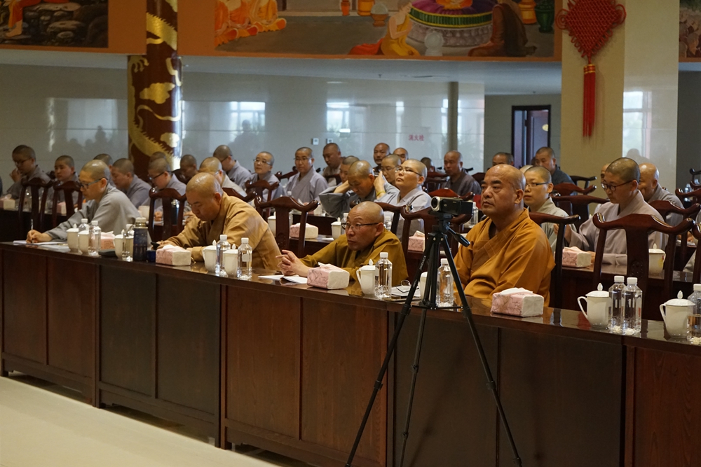 省佛教协会副会长本英法师、中谛法师、明临法师分别传达;中佛协新闻发言人就“心灵法门”有关问题发表的谈话、中国佛教协会第九届理事会权益保护委员会会议决议、中佛协《2017年继续开展文明敬香合理放生建设生态寺院活动的通知》等相关文件。
